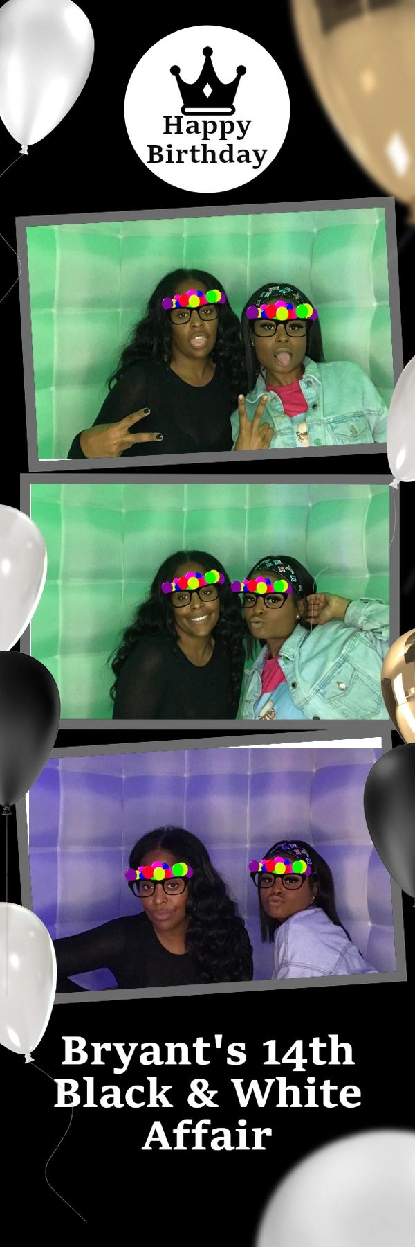 This booth includes a custom template, instant prints, animated gifs, Boomerangs and animated props.